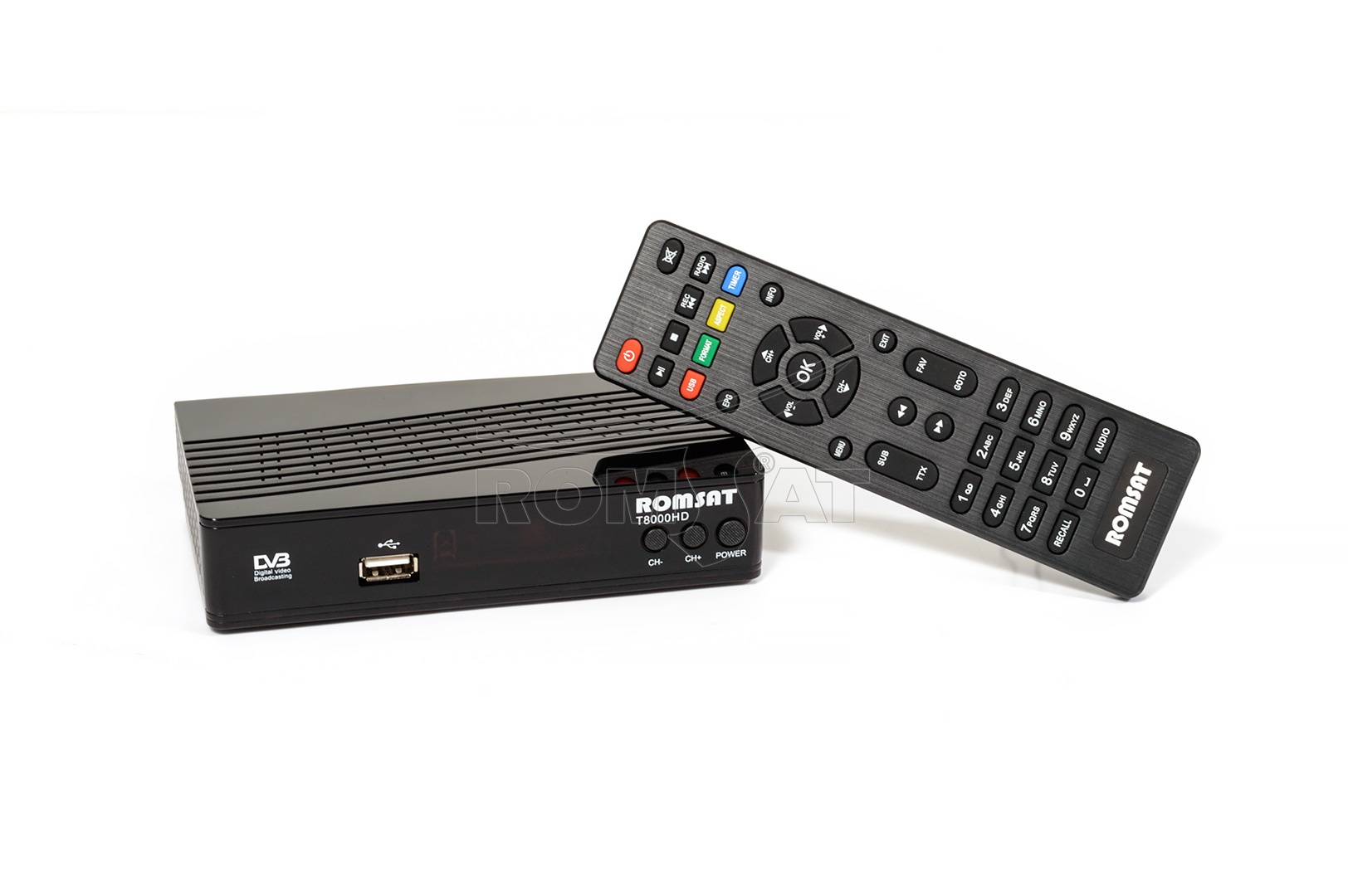 Romsat T8000HD - це цифровий ефірний DVB-T2 (FTA) приймач з функцією запису (PVR) для прийому відкритих радіо та телевізійних програм стандартної та високої чіткості (HD).
